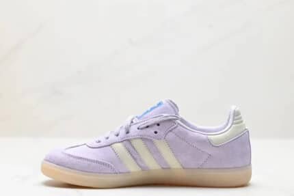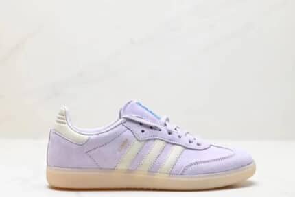 Bring a soft and stylish twist to your footwear collection with the Adidas Samba OG Light Purple Cream sneakers. These