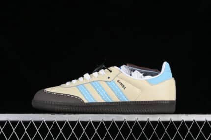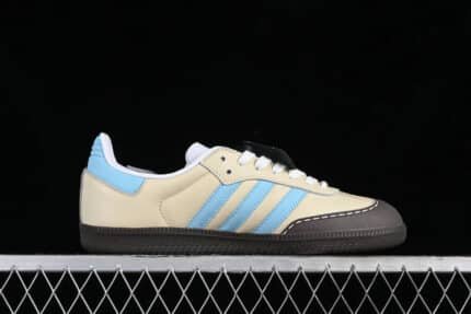Bring back timeless street style with the Adidas Samba OG Cream Blue. This legendary sneaker combines vintage design with modern