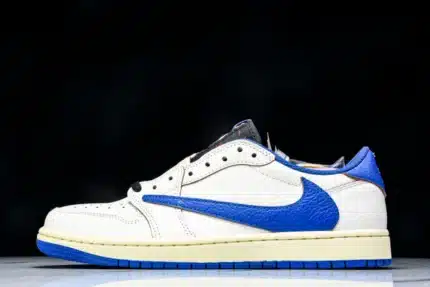 The Fragment Design x Travis Scott x Nike Air Jordan 1 Low OG SP White Blue is a highly sought-after