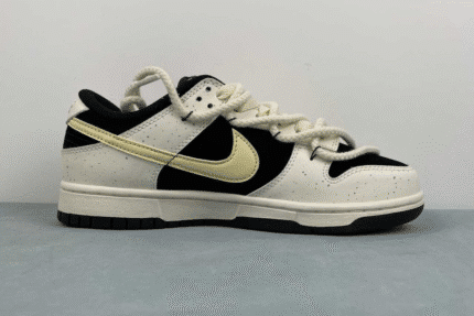 The Nike Dunk Low Black Sail Speckled Custom features a clean black and white upper with subtle speckled details and