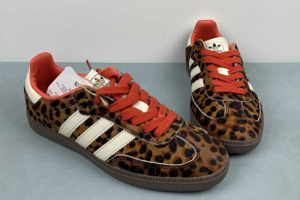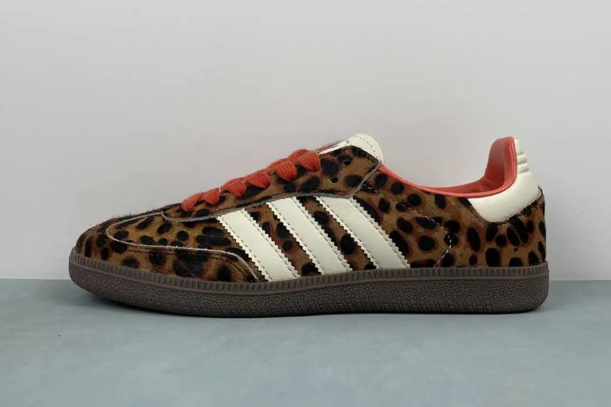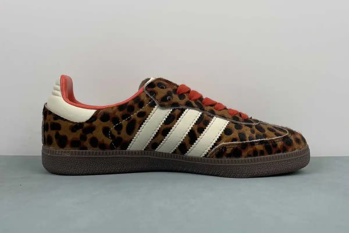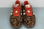 Turn heads with the bold and stylish Adidas Gazelle “Leopard Print” Sneakers — a modern twist on the classic silhouette. Featuring a striking faux-fur leopard pattern upper, these shoes combine retro charm with wild flair. The signature three white Adidas stripes stand out against the animal print, while vibrant red laces add a pop of color. Built with a durable rubber outsole and cushioned interior, this pair offers both comfort and standout street style.