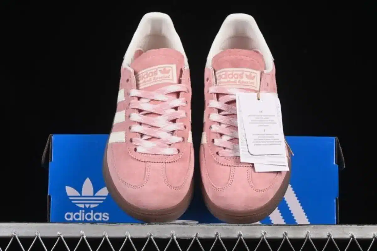 Originally released in 1979 for professional handball players, the Handball Spezial has become a popular lifestyle sneaker thanks to its classic design and comfortable fit. This version features a soft pink suede upper paired with cream white 3-Stripes, creating a clean and stylish look.
