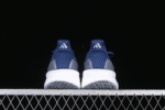 This is a stylish Adidas running shoe featuring a navy blue mesh upper, the iconic white three-stripe branding, and a thick cushioned sole for maximum comfort and support. Designed for both performance and everyday wear.