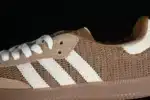 This version features a premium “Cardboard” brown upper crafted from soft leather and suede, paired with off-white 3-Stripes and heel detailing for a clean, balanced contrast. The classic gum rubber outsole not only enhances traction but also adds that authentic retro finish the Samba is known for.
