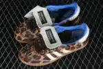 Featuring a premium faux pony-hair upper with an eye-catching leopard print, this edition exudes texture and individuality. The cream white 3-Stripes, stitched detailing, and gum sole preserve the authentic Samba DNA, while gold hardware and contrasting blue lining deliver elevated, designer-level refinement.