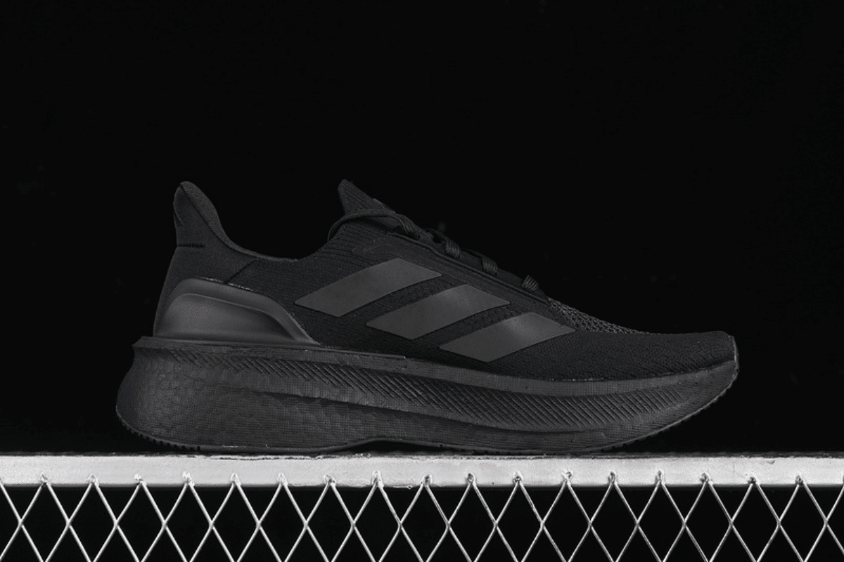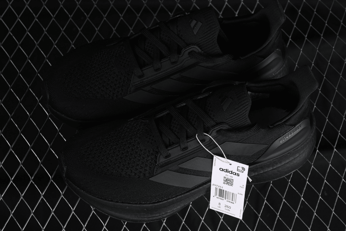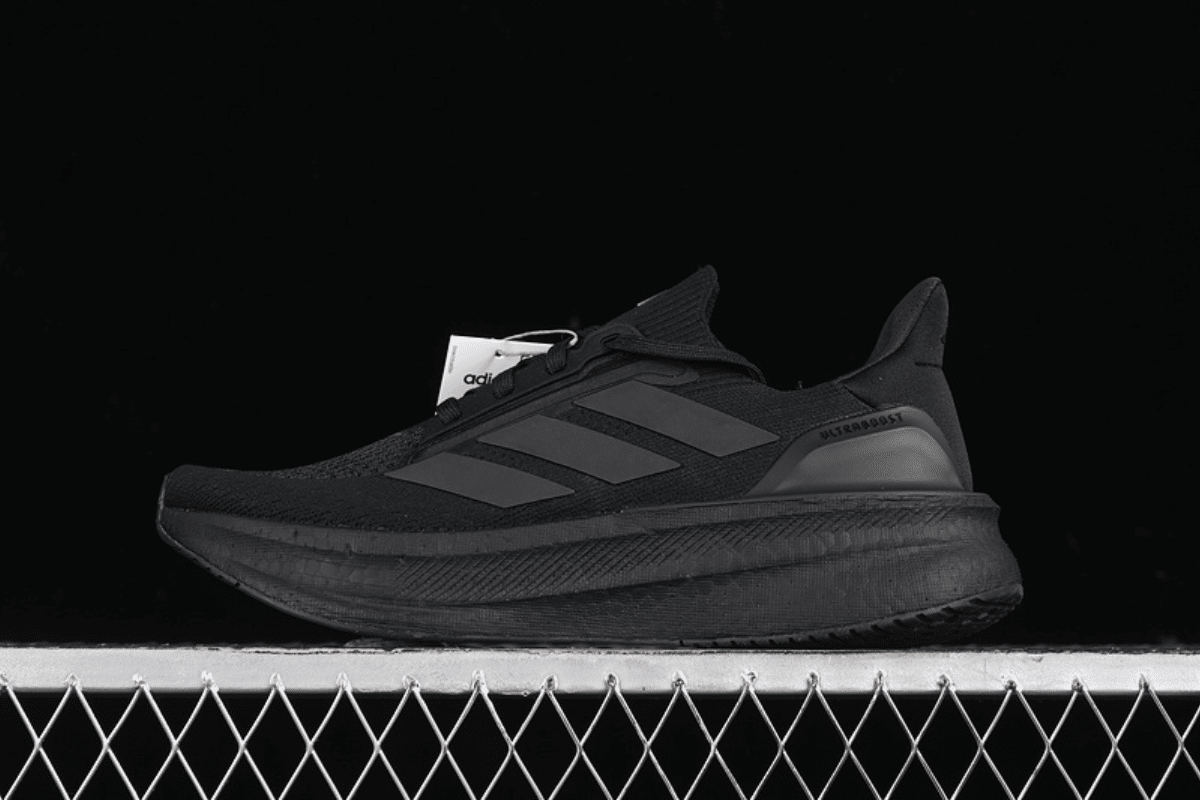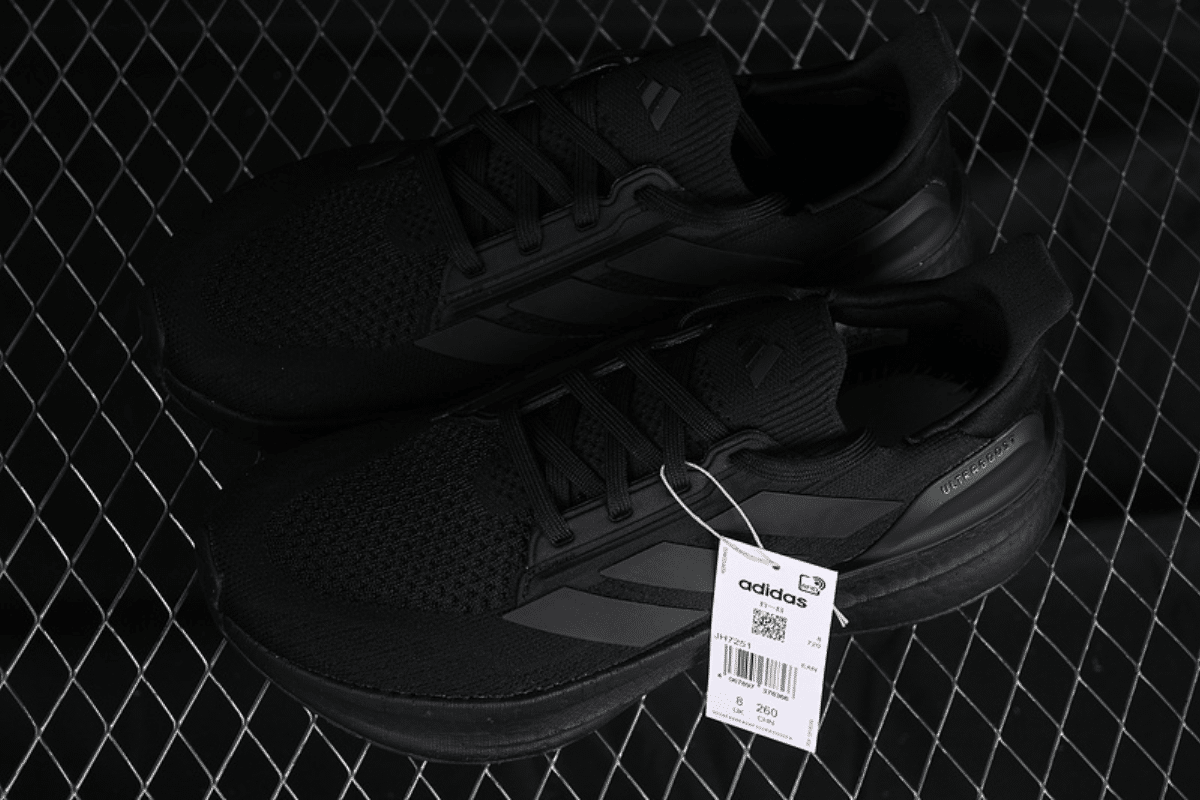 These Adidas Ultraboost sneakers feature a clean triple black design with a breathable mesh upper and Light Boost midsole for lightweight comfort, perfect for running or everyday wear.