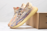 The Adidas Yeezy Boost 350 V2 ‘MX Oat’ features a vibrant multicolor swirl pattern across its Primeknit upper, blending shades of orange, blue, yellow, and beige. A translucent side stripe and creamy pull tab add detail, while the signature Boost midsole offers all-day comfort. Its bold, artistic design stands out in the Yeezy lineup.