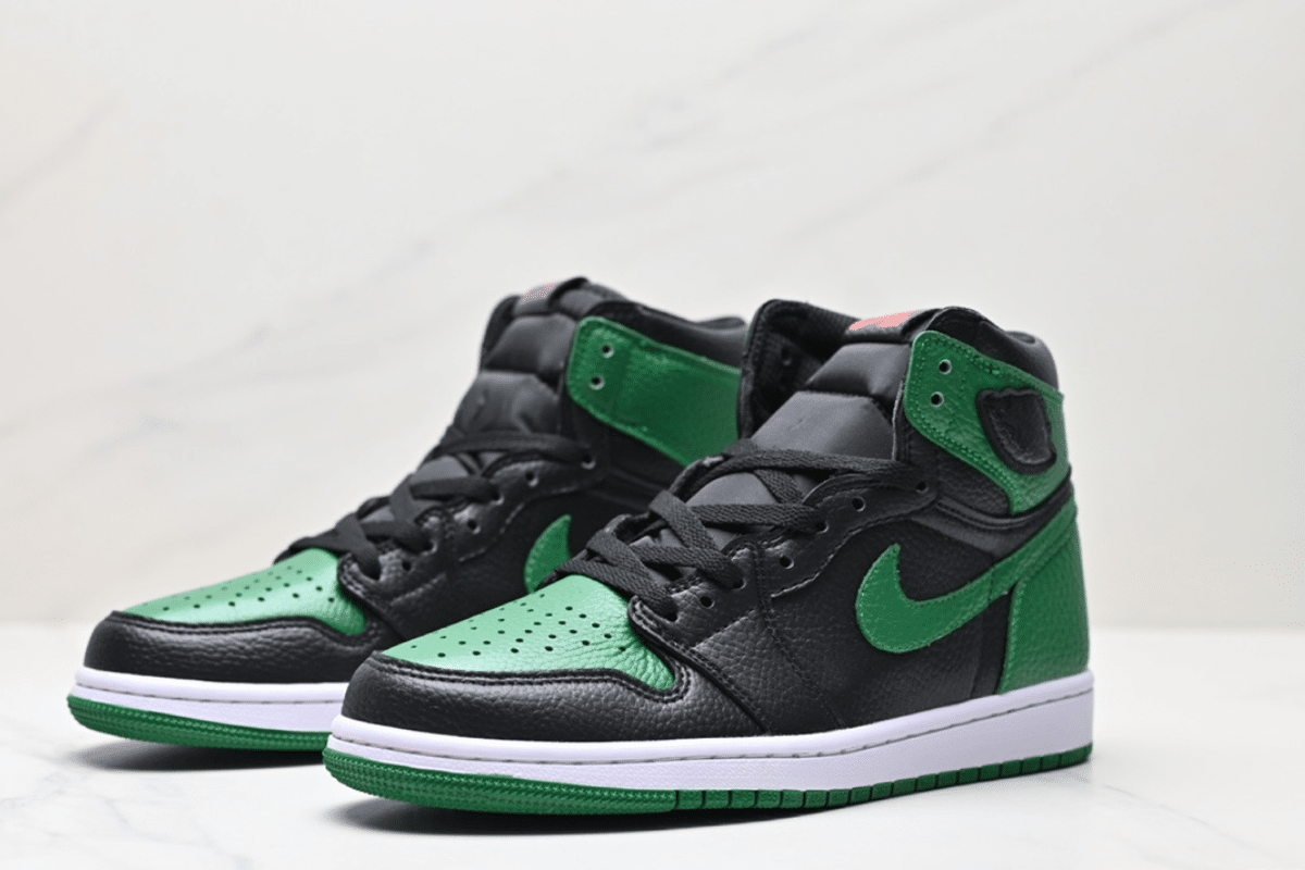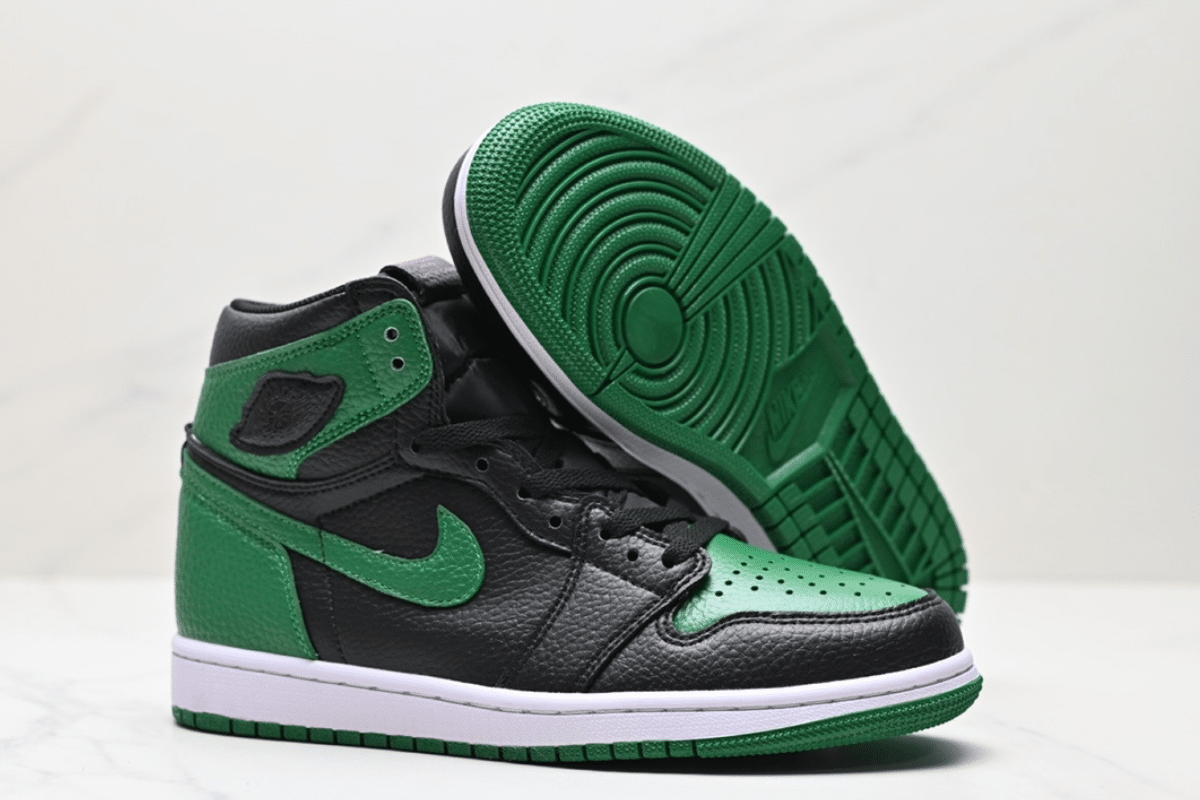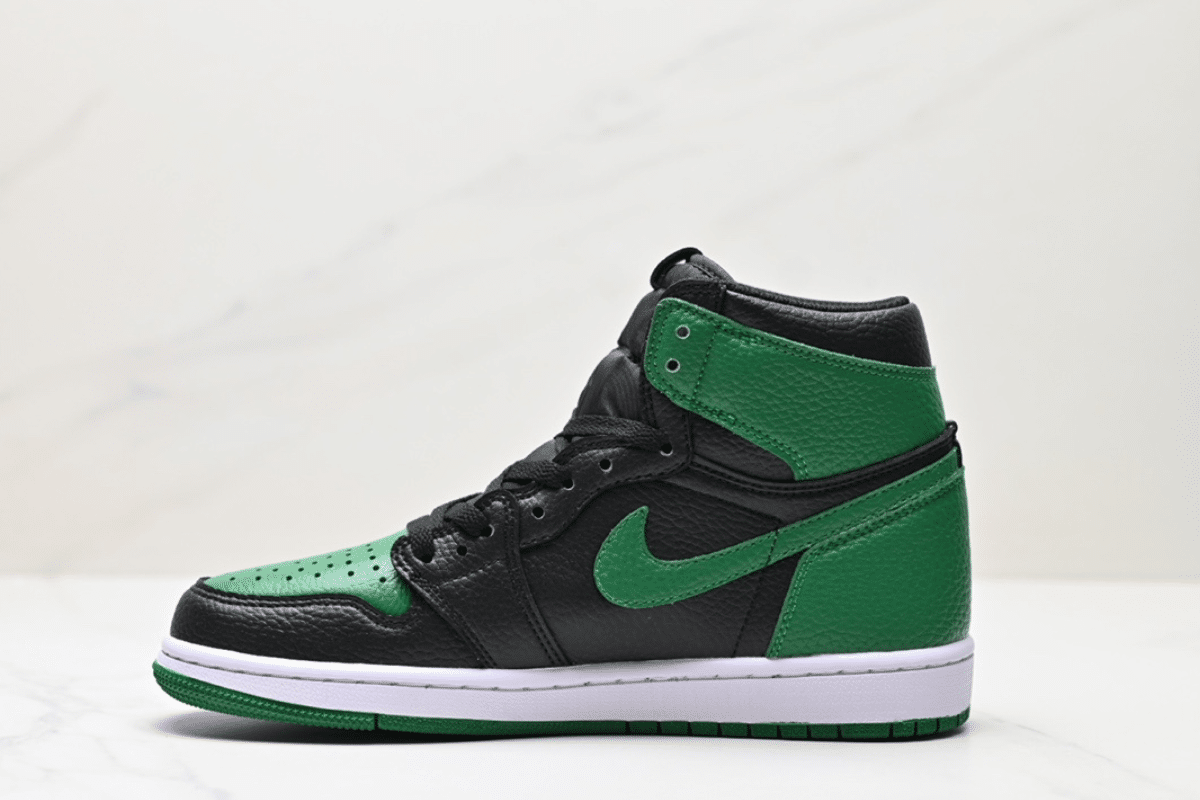 The Air Jordan 1 Retro High OG “Pine Green” features a bold black and green tumbled leather upper, offering a premium feel and standout contrast. Designed with the classic Air Jordan silhouette, it includes signature branding like the Wings logo on the collar and a Nike Air tag on the tongue. The white midsole and green outsole complete the look, delivering style and comfort for everyday wear or collector shelves.