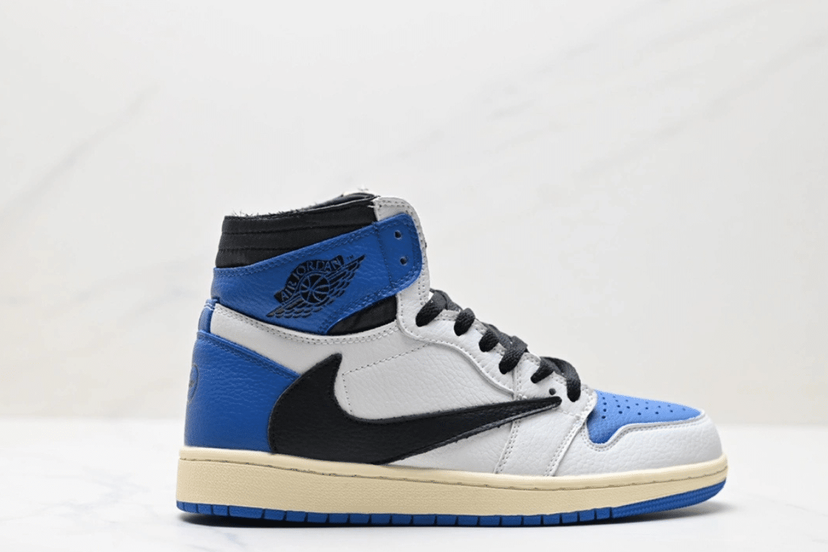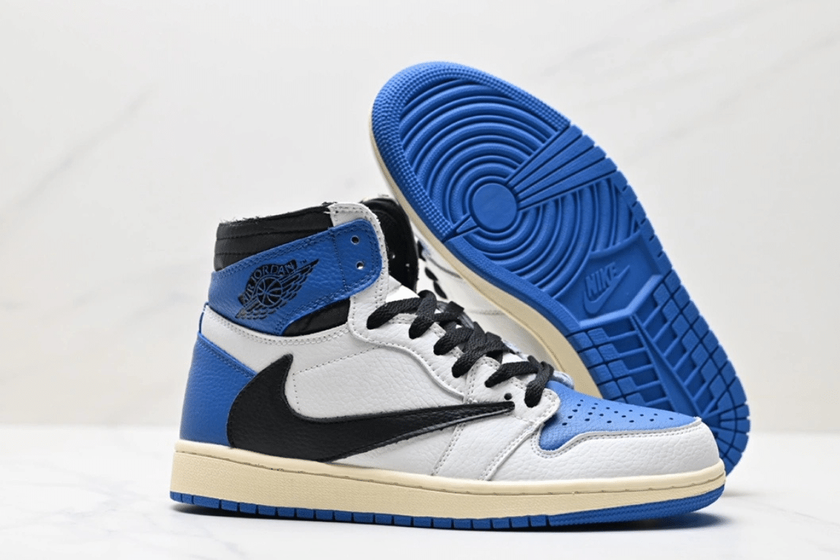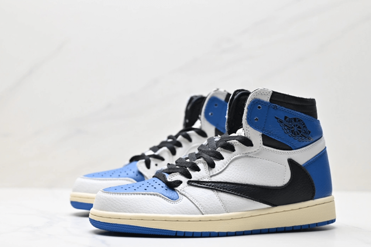 The Travis Scott x Air Jordan 1 Retro High OG “Fragment” is a bold collaboration featuring premium white, blue, and black leather with Scott’s signature reverse Swoosh. Combining Travis Scott’s rebellious style with Fragment Design’s minimalist aesthetic, this limited-edition sneaker is a grail for collectors and hypebeasts alike.