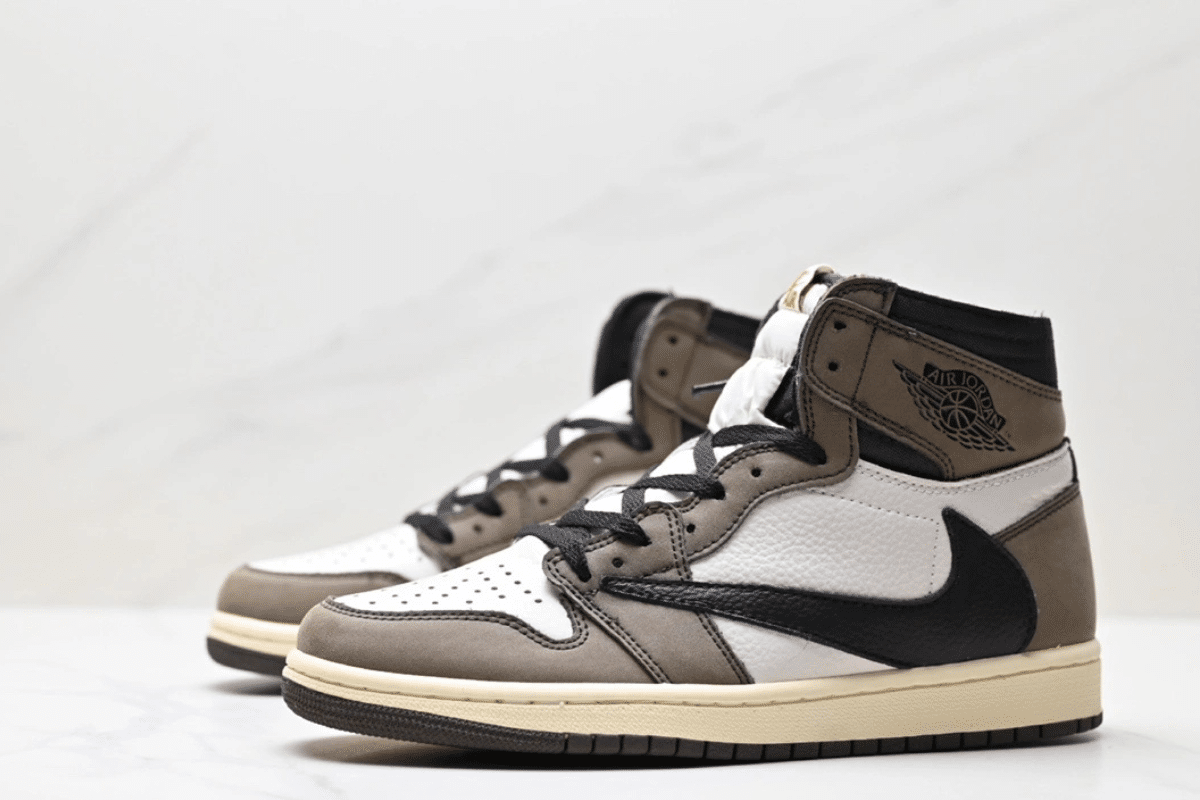 The Air Jordan 1 Retro High OG “Travis Scott Mocha” features a unique twist on the classic silhouette with earthy brown suede overlays, white leather panels, and a bold reverse black Swoosh. Designed in collaboration with rapper Travis Scott, this limited-edition sneaker blends streetwear style with premium materials.