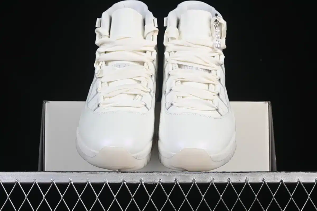 Elevate your style with the Air Jordan 11 “Triple White Frost”, a sleek and clean all-white take on one of the most iconic silhouettes in sneaker history. This elegant version features a smooth white upper, tonal stitching, and the signature glossy patent leather mudguard for a refined, timeless look.