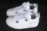 This clean all-white edition features premium leather construction, delivering a sleek and versatile look that pairs with any outfit. The signature mesh panels and structured design provide breathability and support, while the visible Air unit ensures all-day comfort.