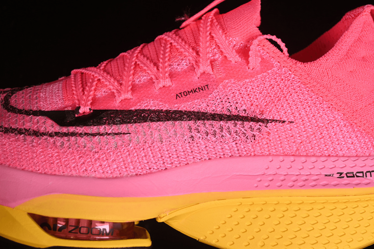 A cutting-edge running shoe designed for elite athletes, featuring a sleek black and pink design, advanced ZoomX foam for energy return, a full-length carbon plate for propulsion, and responsive Zoom Air pods for cushioning. Perfect for serious runners seeking speed and support.