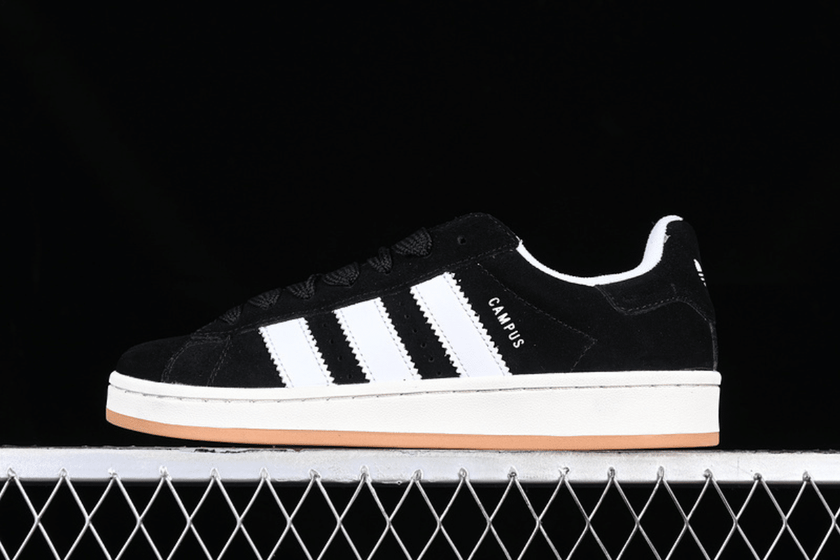 The Adidas Campus 00s in Core Black features a premium suede upper with bold white leather stripes and a classic gum sole. Blending retro skate style with everyday comfort, it’s a timeless sneaker for casual wear.