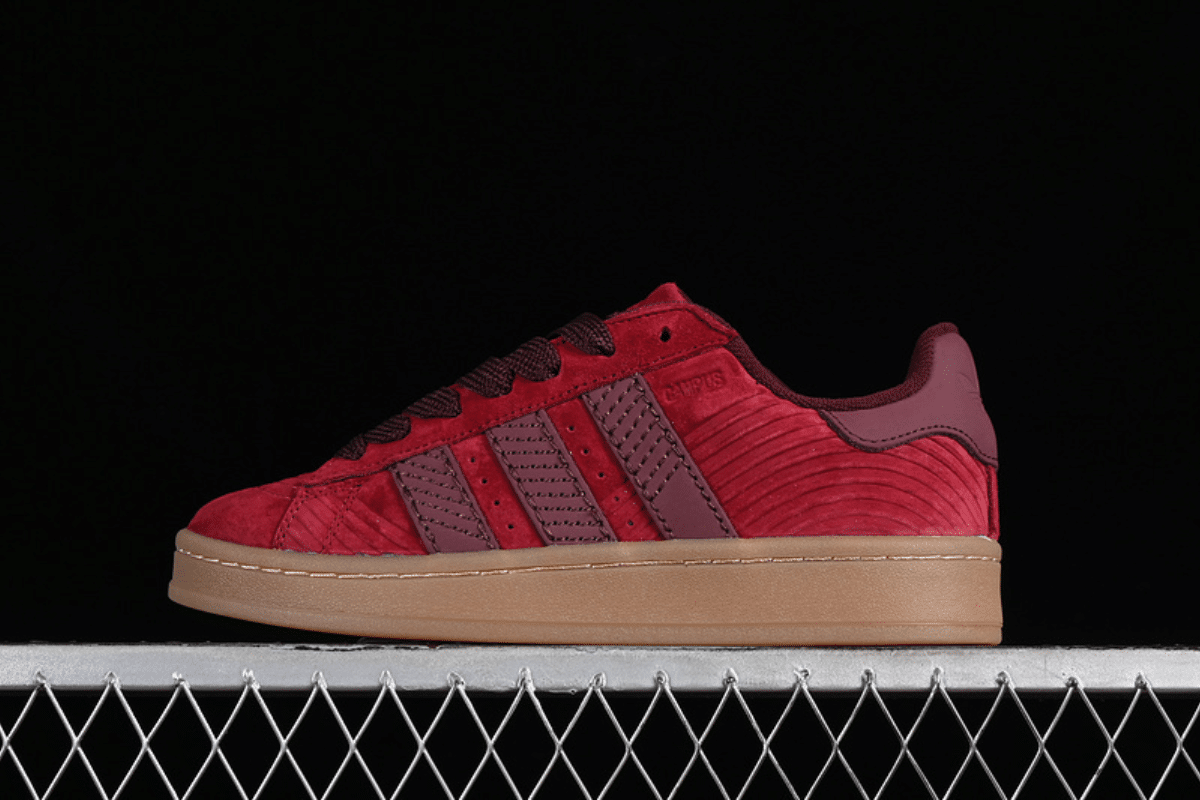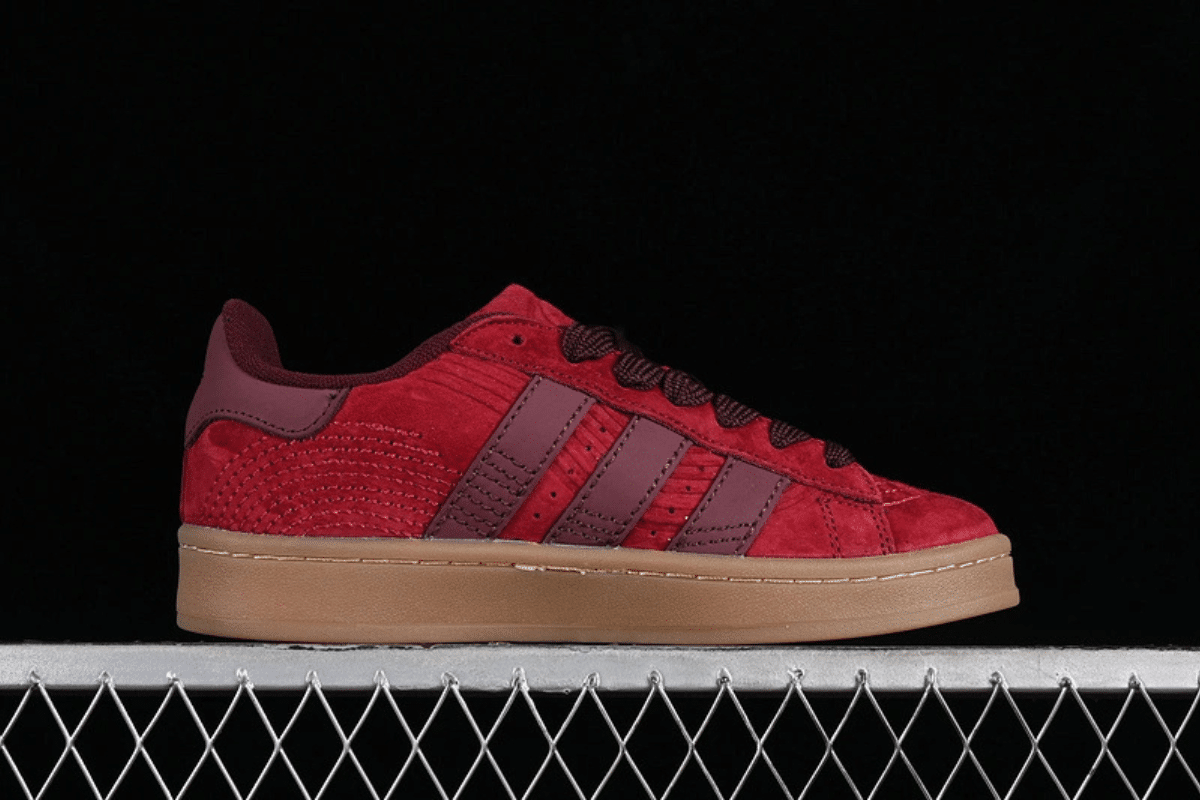The Adidas Campus 00s “Team Red” features a bold red suede upper, maroon 3-Stripes, and a gum sole. Inspired by 2000s skate style, it’s a perfect mix of vintage and modern streetwear.