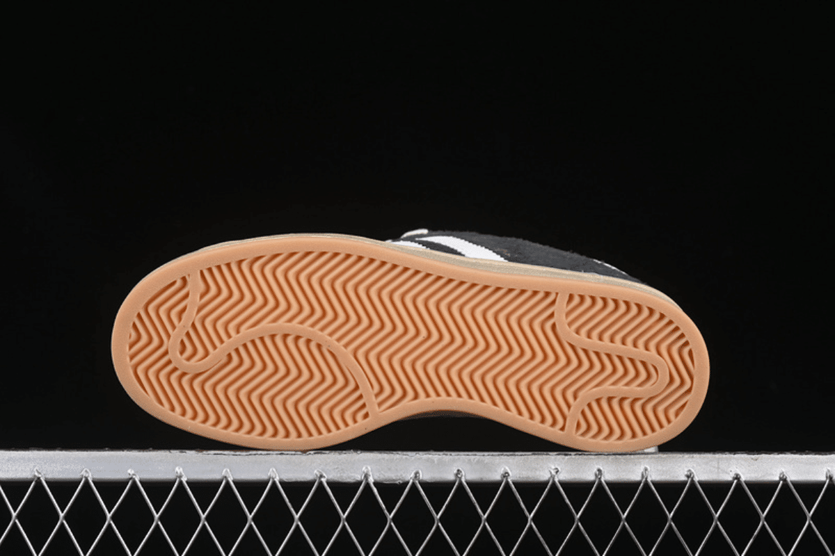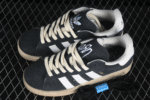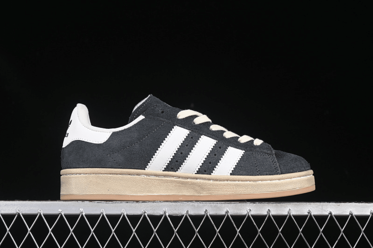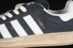 The Adidas Campus 80s “Core Black / White” features a premium black suede upper with signature white leather 3-Stripes and heel tab. This retro-inspired sneaker offers a timeless look with a durable rubber sole and vintage-style off-white midsole, perfect for everyday wear