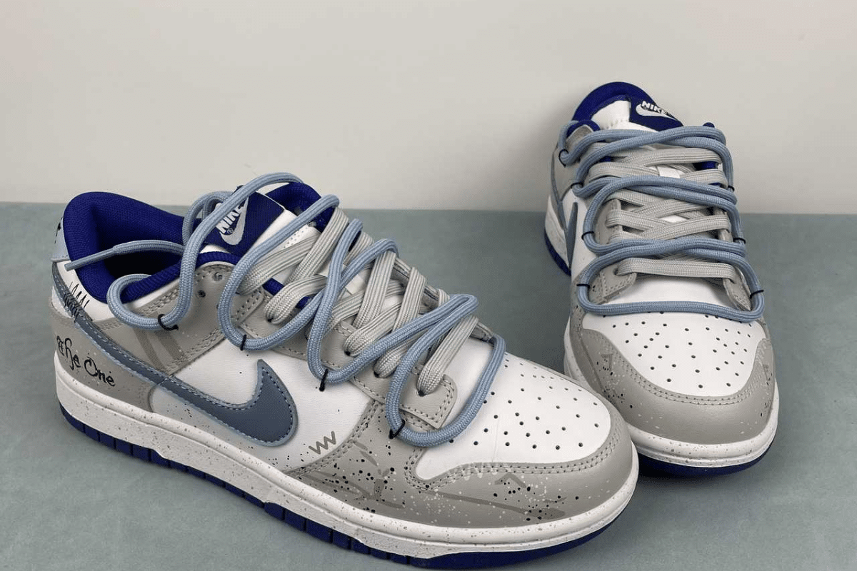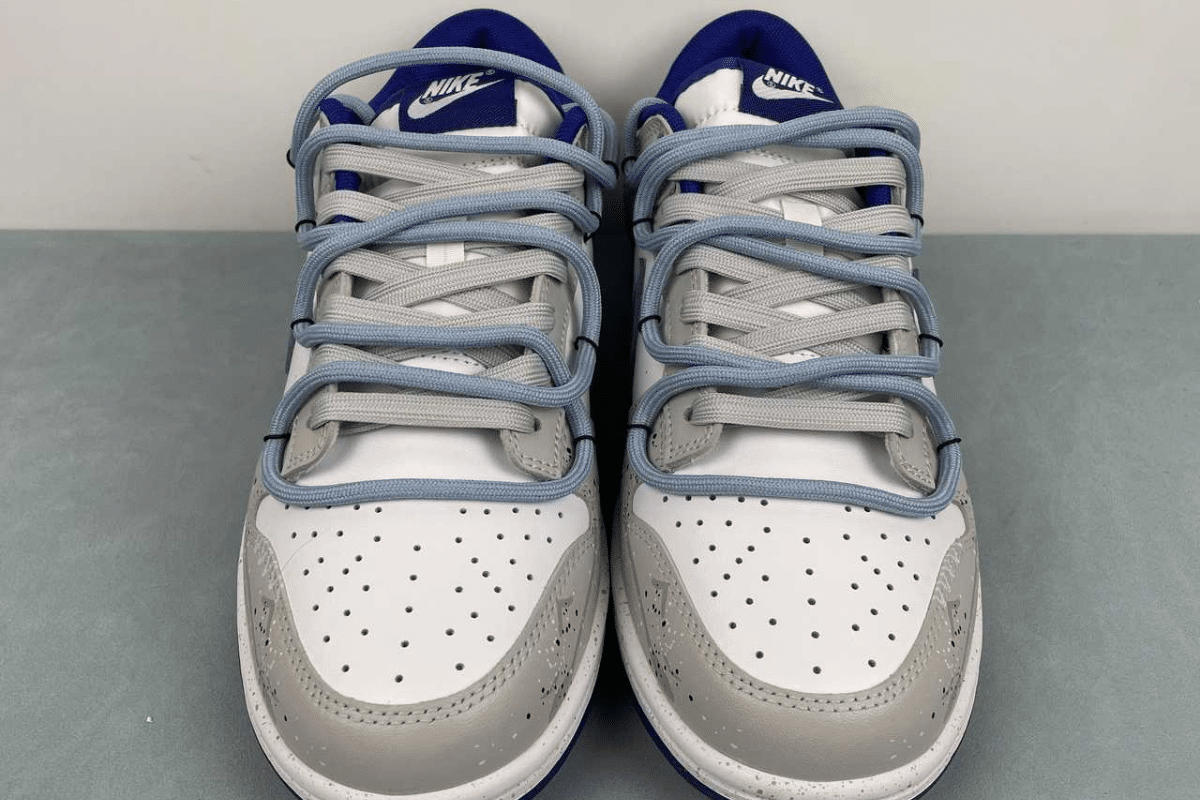 The Nike Dunk Low x Louis Vuitton “Blue” is a luxury custom sneaker that blends the classic Dunk Low silhouette