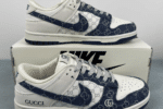 The Nike Dunk Low x Gucci Inspired Denim Sneakers combine classic Dunk style with luxury fashion flair. Featuring premium denim fabric and Gucci-inspired colors and patterns, this custom pair offers a bold, high-end twist on a streetwear staple.