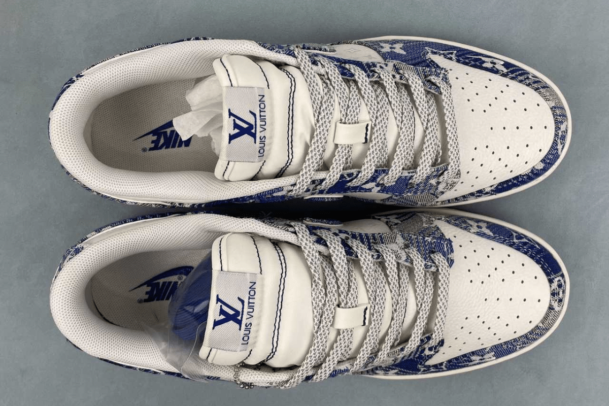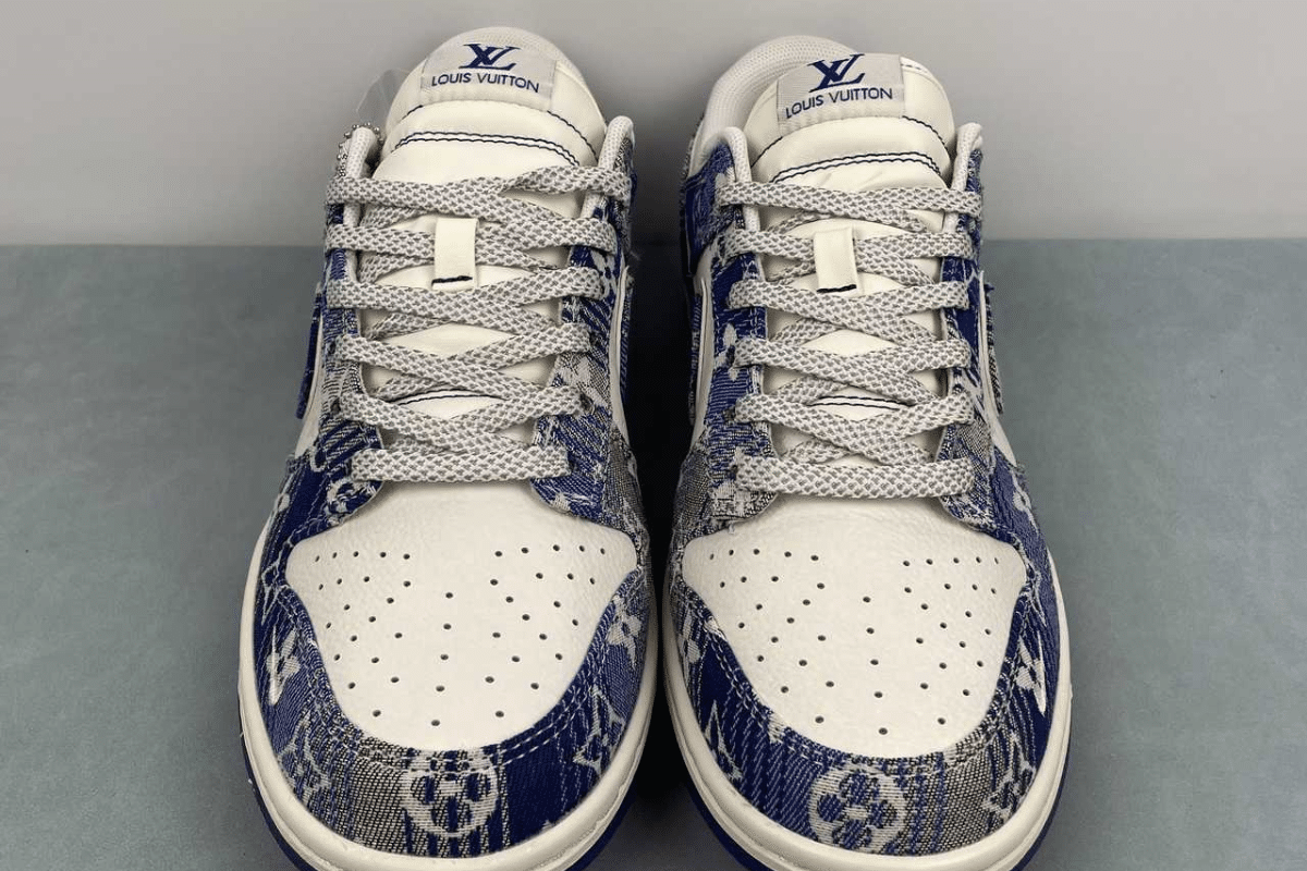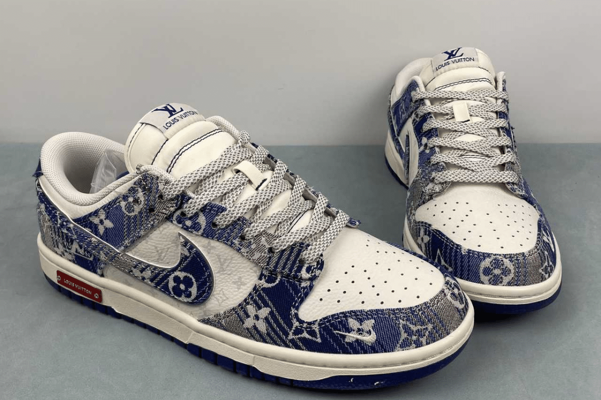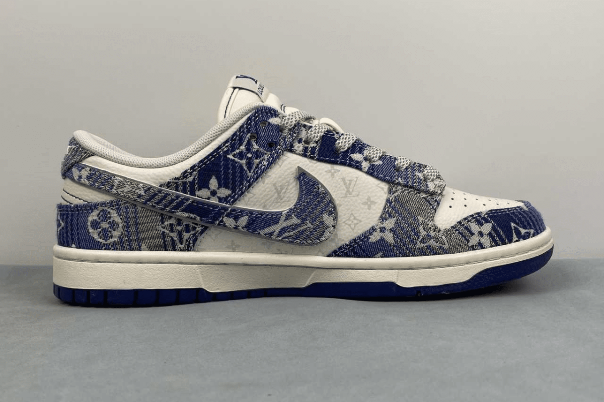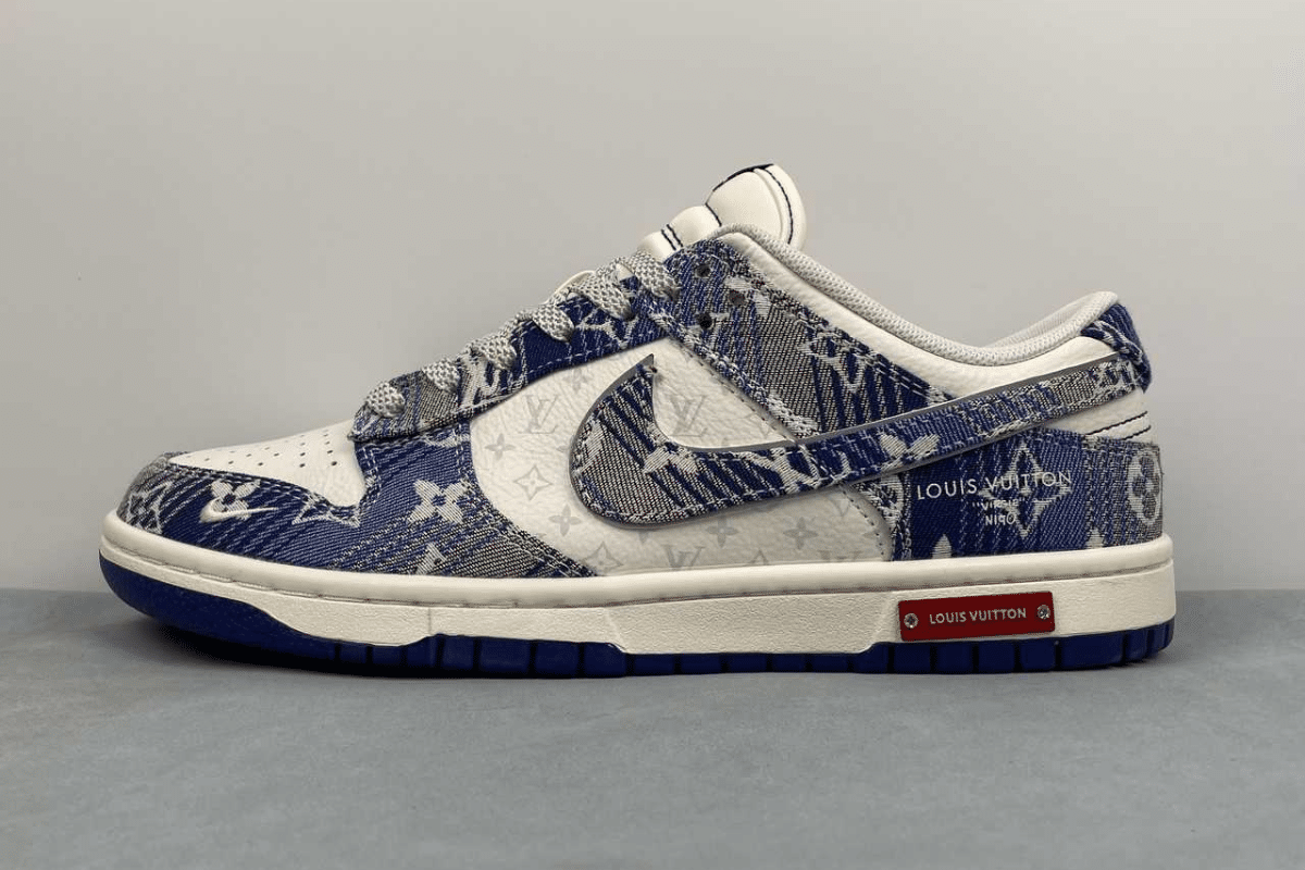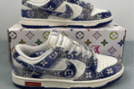 The Nike Dunk Low x Louis Vuitton “Blue” is a luxury custom sneaker that blends the classic Dunk Low silhouette with Louis Vuitton’s iconic blue monogram denim design. This stylish collaboration stands out with premium materials and bold branding, making it a must-have for fashion-forward sneaker collectors.