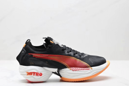 The Puma Fast-R NITRO Elite is a high-performance running shoe designed for speed and efficiency. It features a breathable black