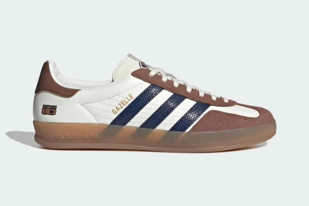 Step up your streetwear game with the Adidas Gazelle 85 Brown White Navy. This iconic silhouette combines premium suede and smooth leather for a timeless look. Featuring the classic three stripes in navy, soft brown overlays, and a gum sole, these sneakers deliver comfort and vintage style for everyday wear. Perfect for casual outfits or sporty looks.