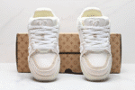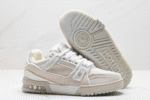 The Louis Vuitton LV Trainer Sneaker in Beige features a premium blend of materials, including monogram-textured textile and smooth leather. Designed for both comfort and luxury, it combines classic streetwear style with the iconic elegance of Louis Vuitton branding.