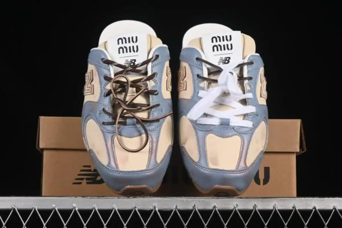 The iconic Miu Miu x New Balance 530 Series Low reimagined as a stylish sneaker mule. This design blends luxury fashion with New Balance’s sporty heritage, featuring premium materials, a soft cushioned sole, and an open-back slip-on style for effortless wear. The blue and beige colorway adds a clean, modern touch—perfect for casual looks with a high-fashion edge. Comfortable, lightweight, and statement-making for everyday wear.