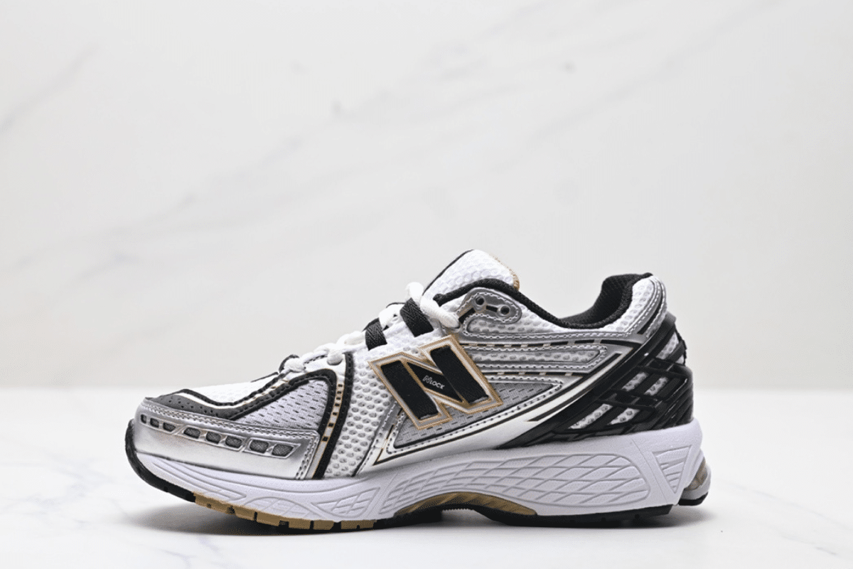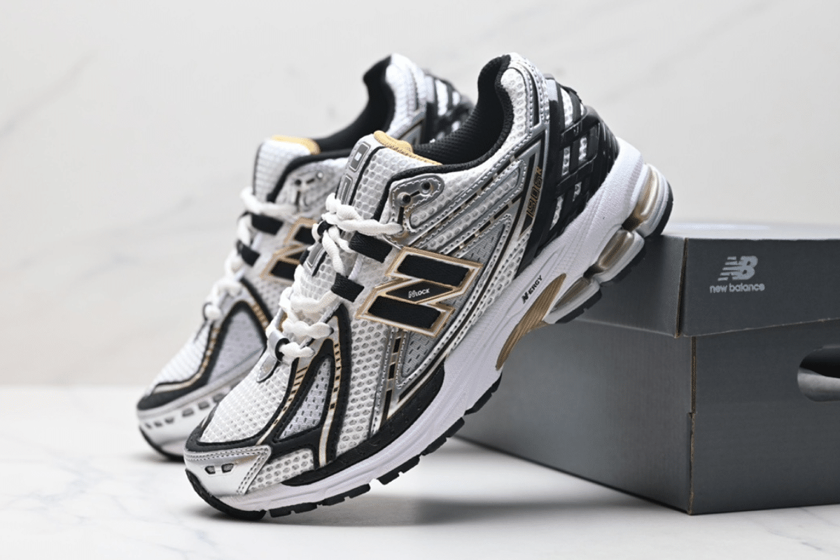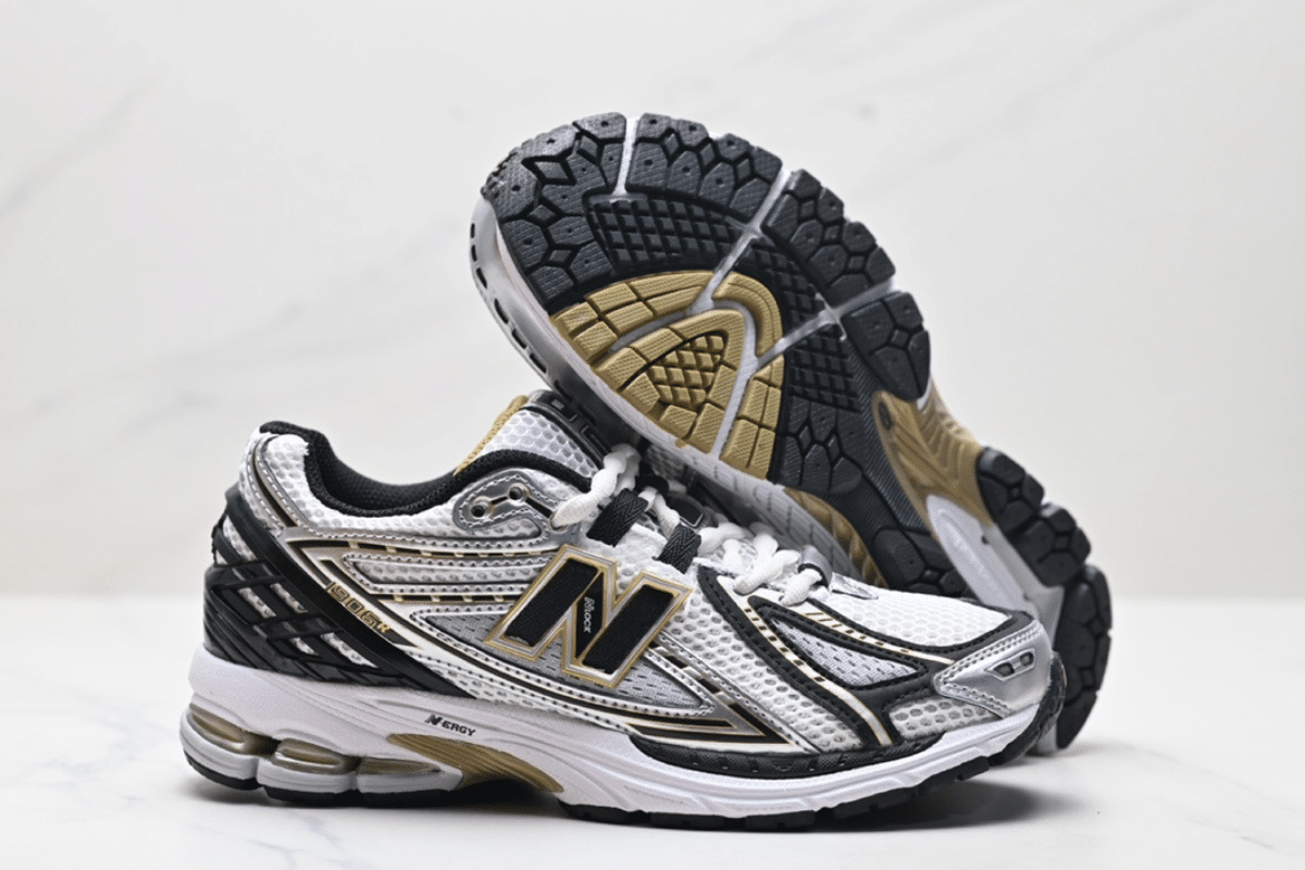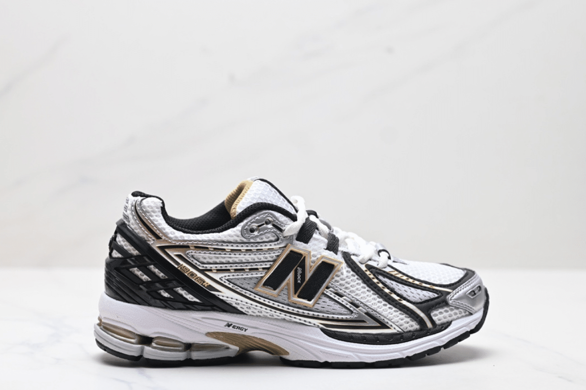 The New Balance 1906R White Black Gold Metallic combines breathable mesh with sleek black and gold accents for a bold, modern look. Designed with ABZORB cushioning and a durable sole, it offers both comfort and performance in every step.