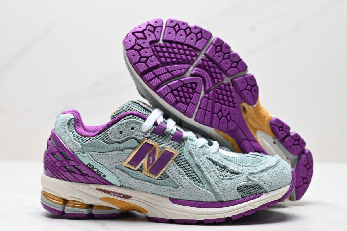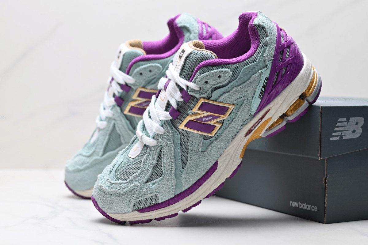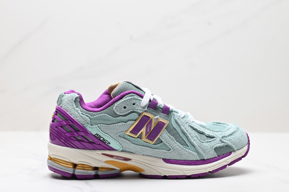 The New Balance 1906R Aqua Purple blends vintage running design with vibrant modern tones. Featuring a mix of suede and mesh in aqua and lilac with bold purple and yellow accents, this sneaker offers both comfort and standout style. N-ERGY cushioning and ABZORB tech ensure all-day performance and support.