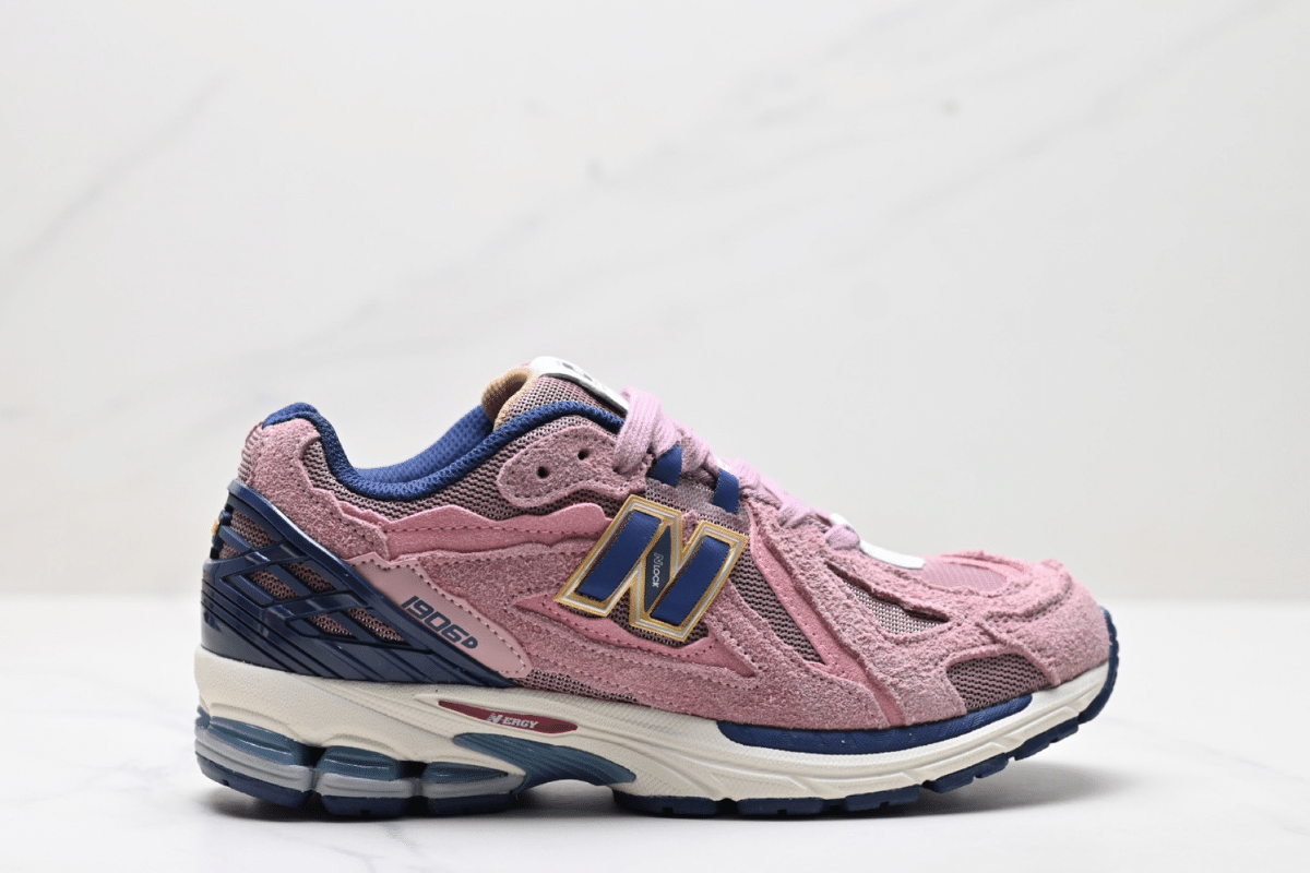 This is the New Balance 1906R in a bold pink suede and mesh combination, accented with navy and gold details. Blending retro aesthetics with modern performance, it features N-ergy cushioning for all-day comfort and standout streetwear style.