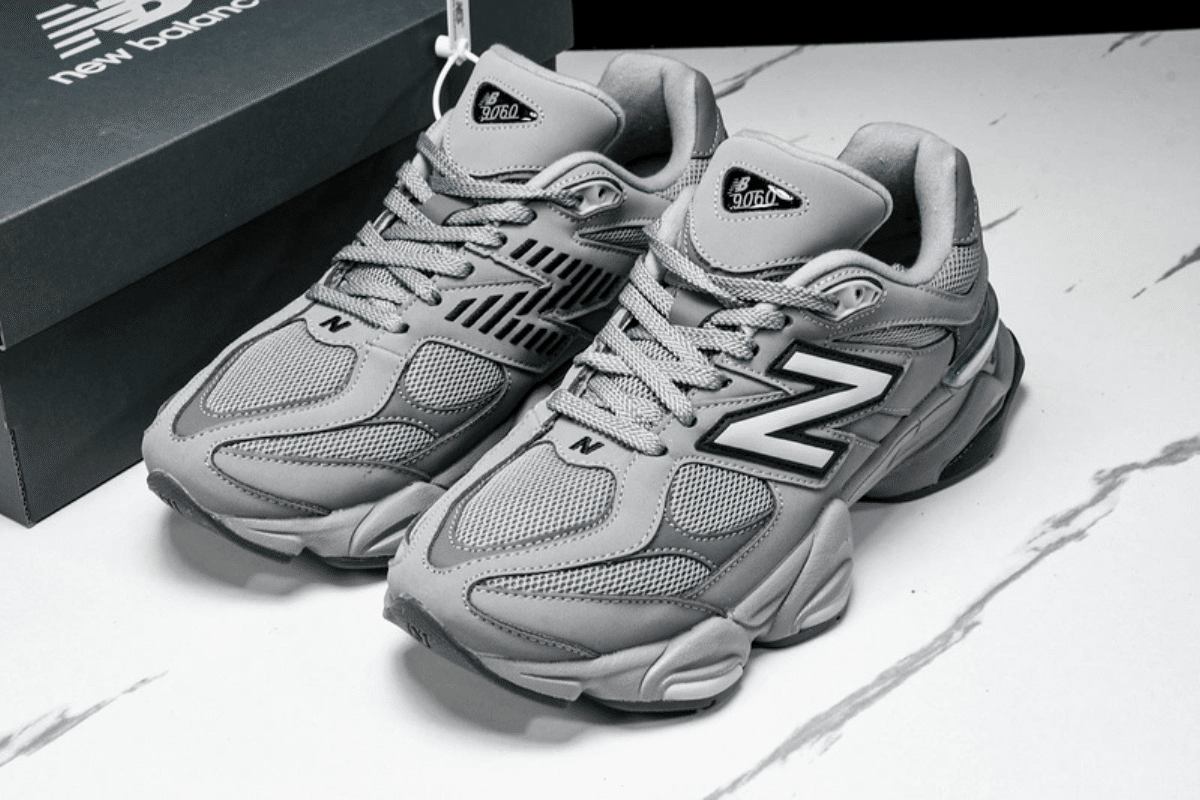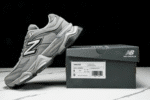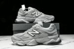 The New Balance NB9060 Jointly Designed Dark Gray/White features a bold, collaborative design with a mix of suede and mesh in dark gray tones, accented by crisp white details. Its chunky sole and ABZORB cushioning offer comfort and a futuristic edge, blending performance with modern street style.