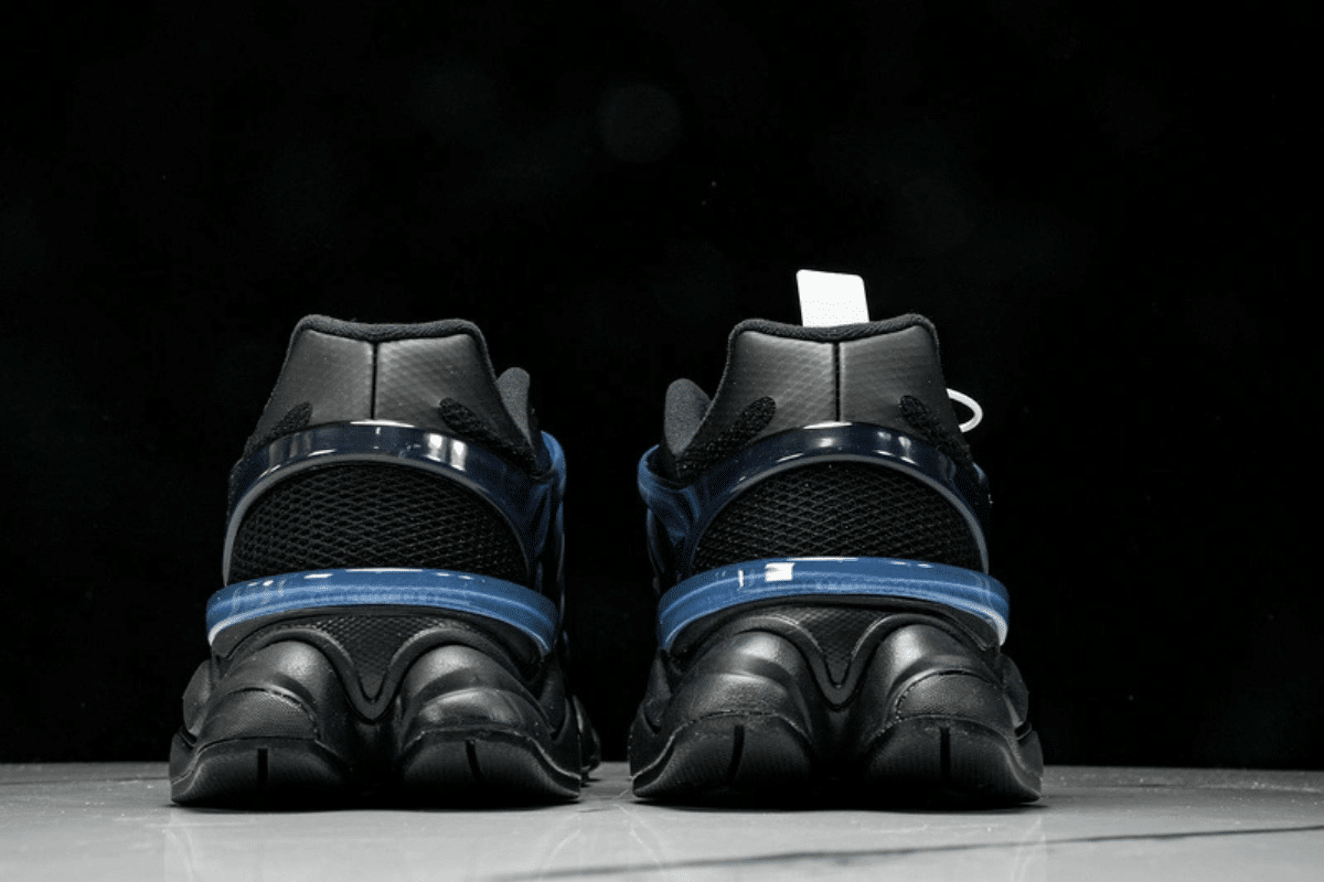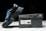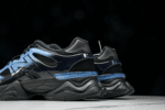 The New Balance U9060IDW combines bold design with modern comfort, featuring a sleek black mesh upper accented by striking blue iridescent overlays and an exaggerated midsole for a futuristic look