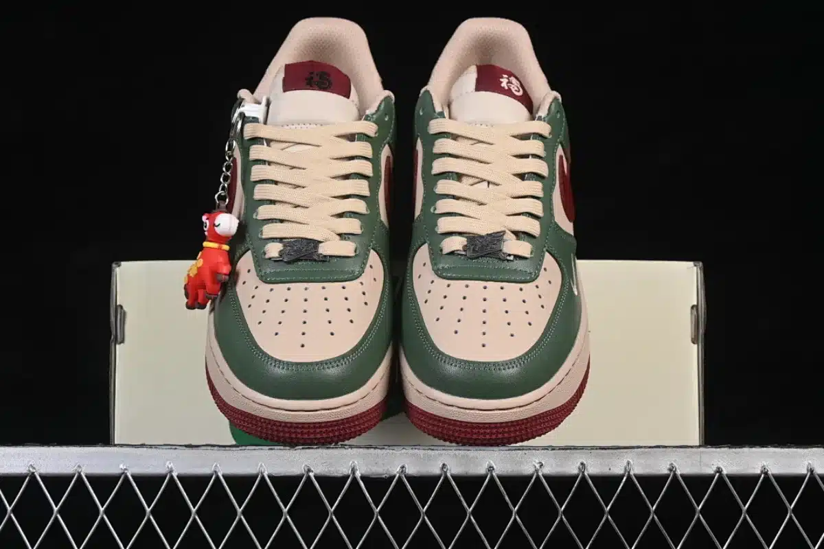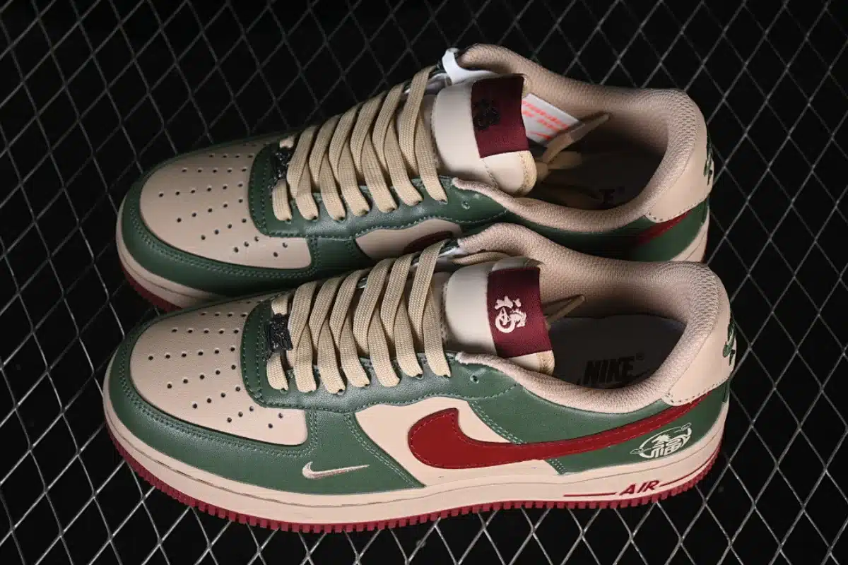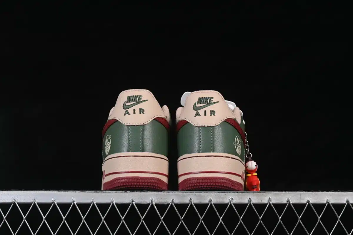 Perfect for casual use or streetwear styling, the Nike Air Force 1 ’07 Low Brown Green Red is a must-have for those who want a classic sneaker with a unique color twist.