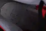 The upper features premium red nubuck, giving the shoe a rich texture and eye-catching appearance. Black accents on the mesh panels, wings, and midsole create strong contrast, while subtle grey details add balance and depth to the design. This striking combination makes the sneaker perfect for both streetwear and casual outfits.