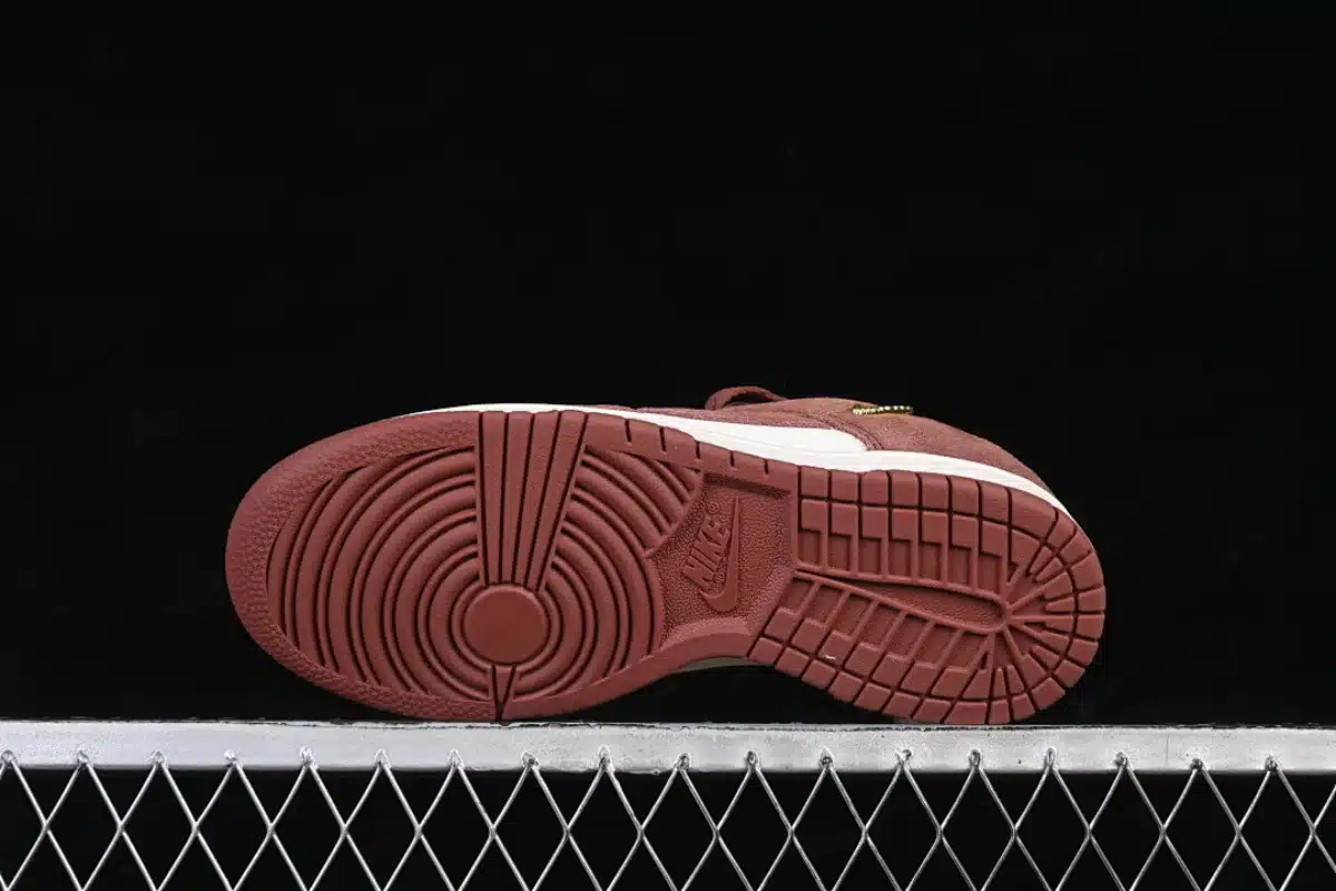 Elevate your style with the Nike Dunk Low “Sail / Metallic Gold / Red Sepia.” This elegant sneaker features a smooth Sail-colored base, enhanced by luxurious Metallic Gold accents that add a premium touch. The Red Sepia details bring warmth and depth to the design, creating a unique and eye-catching color combination. Crafted with high-quality materials, it offers durability and long-lasting wear, while the padded collar and cushioned sole ensure all-day comfort. Perfect for both casual outfits and standout streetwear looks, this Dunk Low delivers a refined mix of classic design and modern flair.