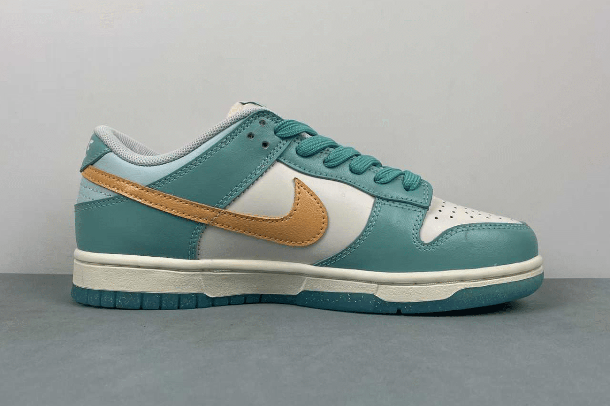 Nike Dunk Low Teal White with Mustard Swoosh