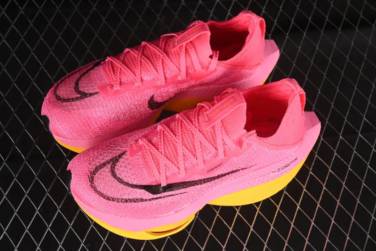 A cutting-edge running shoe designed for elite athletes, featuring a sleek black and pink design, advanced ZoomX foam for energy return, a full-length carbon plate for propulsion, and responsive Zoom Air pods for cushioning. Perfect for serious runners seeking speed and support.