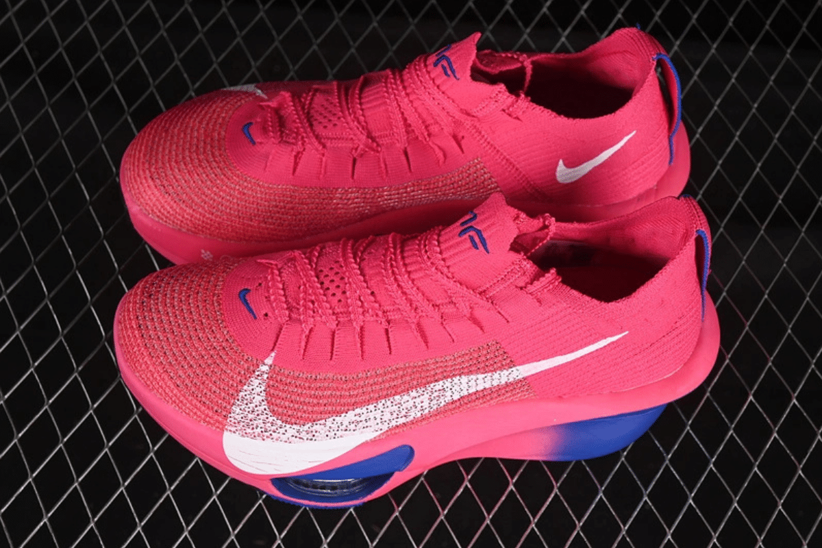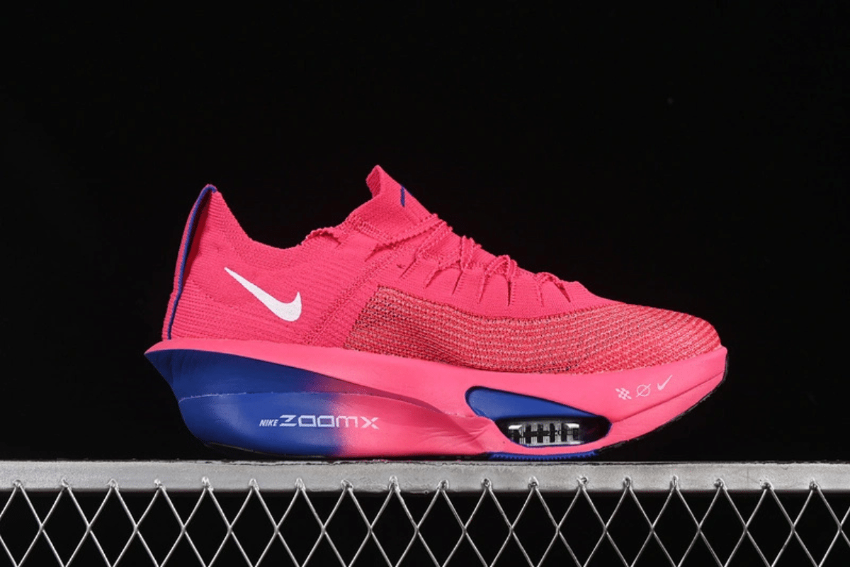 The Nike Zoom Alphafly Next% 3 Prototype in Pink/Blue is a high-performance running shoe designed for speed and efficiency. Featuring bold prototype styling, it combines ultra-light cushioning with a responsive Zoom Air system—perfect for elite runners pushing their limits.