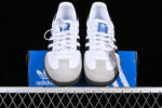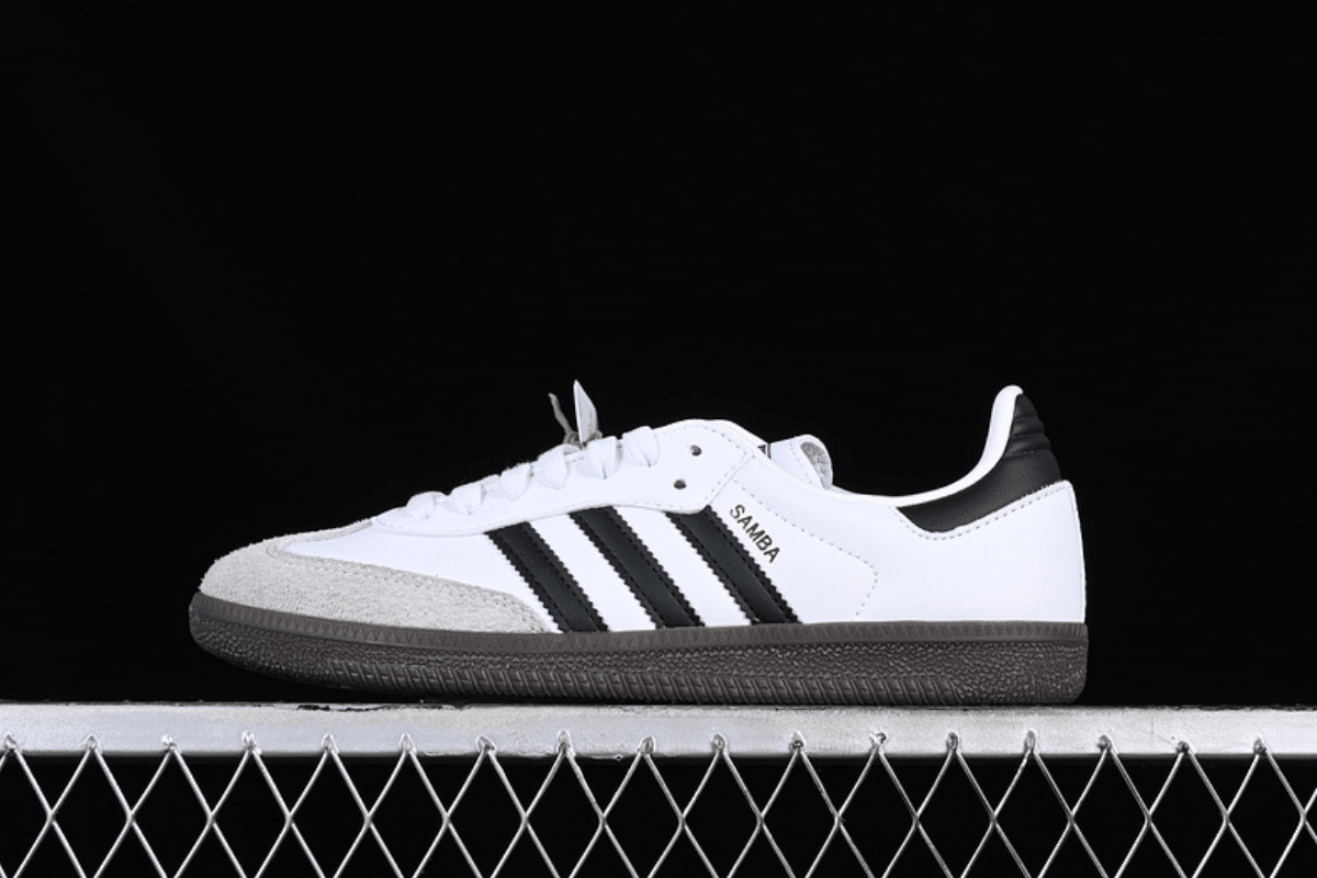 The Samba OG White/Black/Grey is a classic Adidas sneaker featuring a smooth white leather upper, iconic black Three Stripes, and a grey suede toe cap. Designed with a gum rubber sole for traction and style, it’s a timeless silhouette perfect for casual wear.