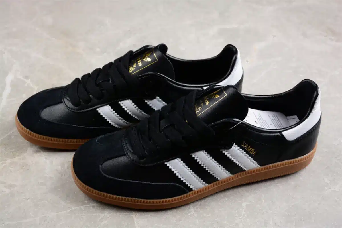 Step into timeless style with the Adidas Samba Classic Black / White sneakers. Featuring a sleek black leather upper paired with iconic white three-stripe branding, this design delivers a clean and versatile look that never goes out of style. The durable gum rubber outsole adds a retro touch while providing excellent grip and traction. Built for comfort and everyday wear, these sneakers offer a low-profile silhouette that pairs effortlessly with casual and streetwear outfits. A true classic, the Samba is perfect for those who appreciate heritage design and modern versatility.